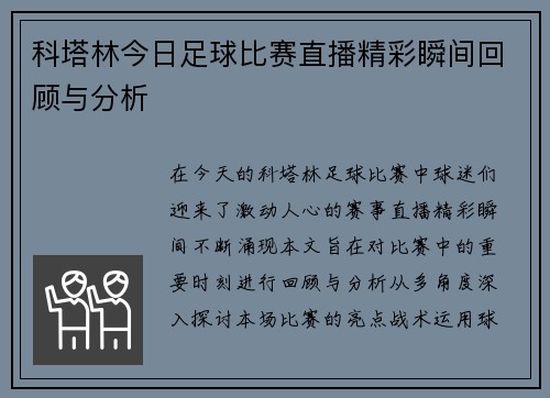 科塔林今日足球比赛直播精彩瞬间回顾与分析