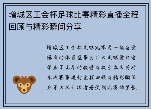 增城区工会杯足球比赛精彩直播全程回顾与精彩瞬间分享